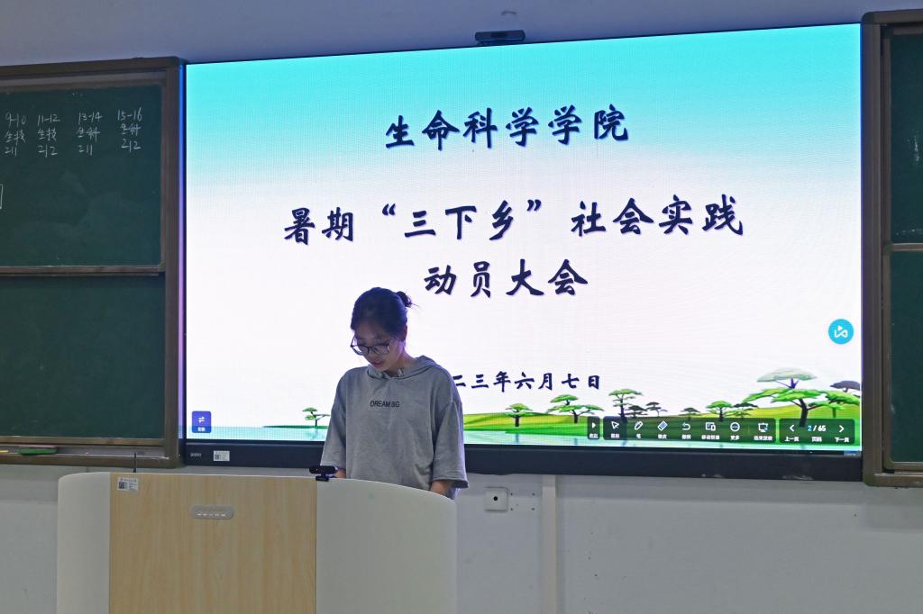 会议上,陈雨梦作为志愿者代表发言,表达了对本次“三下乡”实践活动的积极态度和服务理念。王哲就社会实践的目的意义、方案设计、论文要求和安全意识四个方面进行了介绍,并针对同学们的问题进行答疑。