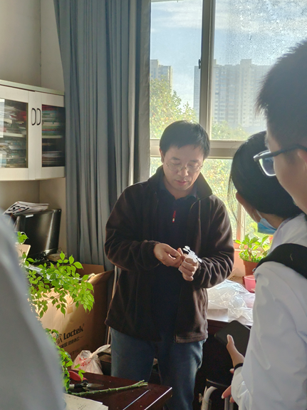 拔尖基地221班全体同学在听取蒋甲福教授的“菊花种植创新与新品种选育”专题讲座后,大家对菊花吸染色技术充满了好奇。与蒋教授约定后,大家在2022年10月20日下午走进生科楼园艺实验室,进行了菊花吸染色技术学习。