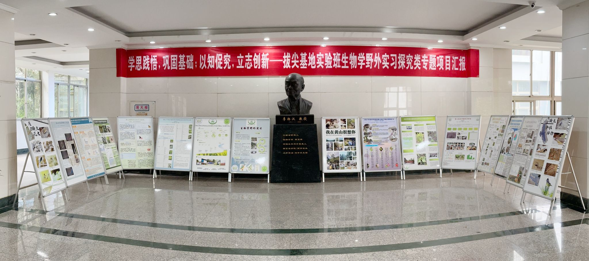 2023年9月28日,生物学野外实习探究性专题项目成果海报在生科大厅展出,为期一月。