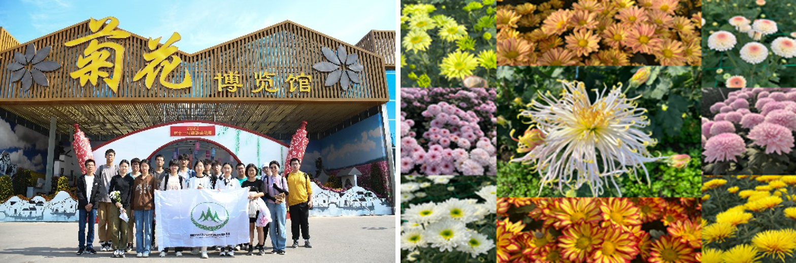 首先,在菊花博览馆中,我校园艺学院王利凯教授为我们讲解了菊花展示品种及其应用,介绍了我校菊花科研团队的发展及取得的成果:突破了抗性、花色、花型、株型等性状的综合改良,率先育成绿色、乒乓型、风车型等优质高抗的奇特菊花新品种,拥有世界最大的菊花基因库,为我国菊花品种更新和产业升级做出了重要贡献;合作开发菊花口红、面膜和花茶等产品,衔接带动当地旅游、餐饮、零售和民宿等“菊花经济”,通过产业融合来提升农产品高附加值,让农民共享科技扶贫成果,促进脱贫攻坚与乡村振兴。