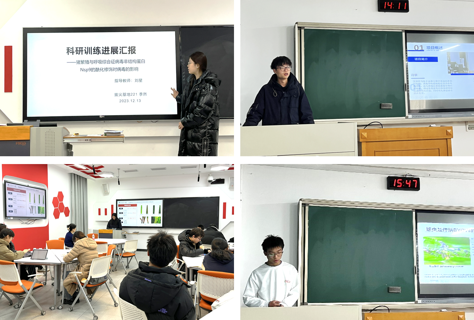 寒冬将至,暖阳待雪。为更好地激发同学们的科研热情,拔尖基地221班于11月29日、12月13日分批进行了科研训练进展汇报,旨在帮助同学们理清实验思路,发现目前存在的问题并及时调整解决,同时也相互交流探讨,共同进步。