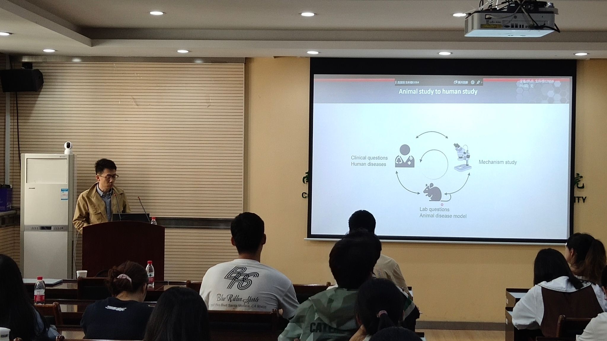 在《宿主黏膜系统的防御机制》讲座中,姚依昆研究员主要讲解了罕见病中GIMAP6IRFIst6突变三个方面对罕见病对人体的侵入与人体的防御系统讲解,其中利用了实验室缺陷小鼠、两个家系的病人等资料进行实验,以及发现了给患病小鼠喂DSS水,之后再利用唾液酸让患病小鼠恢复正常体重的实验,讲解了他们发现了一种可能有希望治疗疾病的方法。并且他还讲解了他们与儿童医院合作来收集病人资料等有趣的事,让人留有印象。