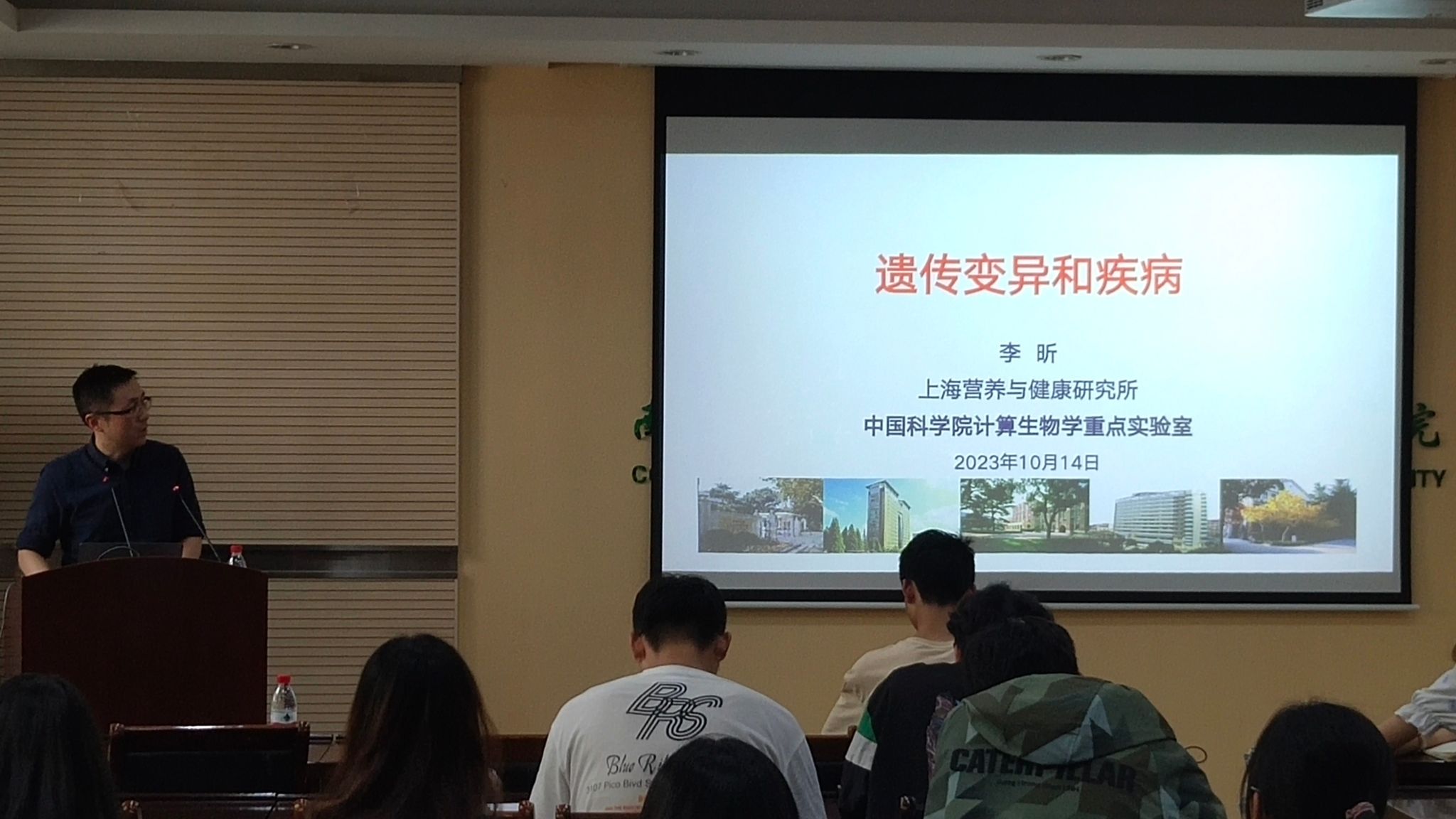 1014日下午14:00,中国科学院专家系列讲座第七十三次学术报告在生科楼E2004成功举办。本次报告成功邀请到了中国科学院上海营养与健康研究所的李昕和姚依昆两位研究员,开展了有关《遗传变异和疾病》和《宿主黏膜系统的防御机制》的主题讲座。本次讲座采用线下讲座形式,吸引了众多学生参加,参会人数超过80人。